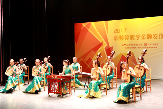 获得奖学金的学生代表邵瑜、王汀,王秋懿现场表演了弹拨乐合奏《杨门女将》及钢琴独奏《双飞蝴蝶》,表达了他们将不忘初心,怀揣感恩之心,以郭婷婷女士为榜样,继续发奋学习,追求艺术梦想的信心和决心。