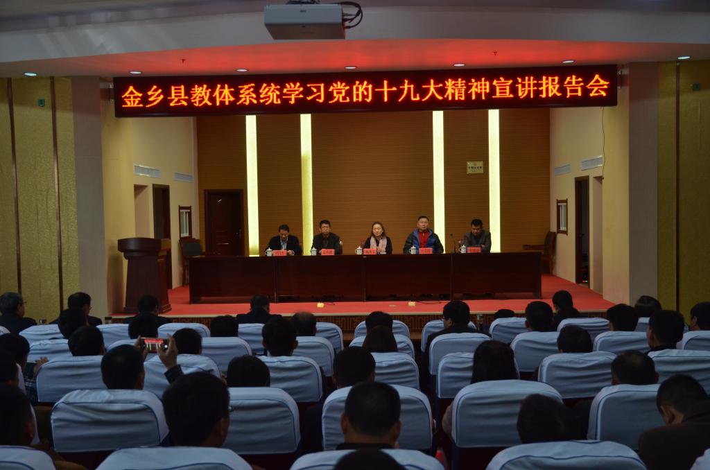 11月18日,党的十九大代表、我校杨秀玉教授应邀到济宁市金乡县教体局宣讲十九大精神。金乡县教体局领导班子、全县中小学校长、党员代表、山东艺术学院戏曲学院负责人等参加报告会。