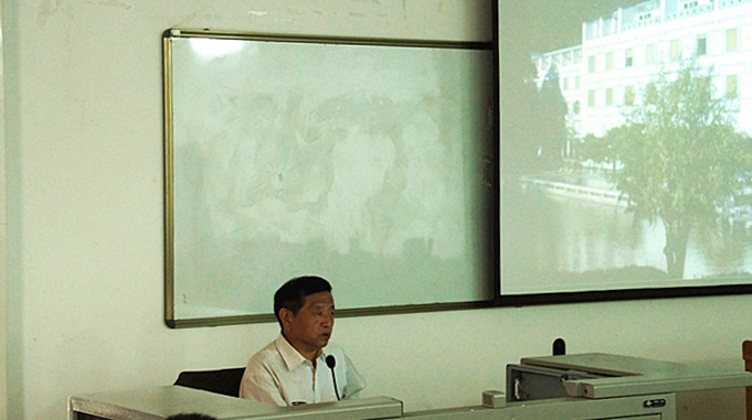 彭吉象教授从“中国艺术如何走向世界”、“中西美学与艺术比较”、“中国传统艺术精神”三个方面展开讲座容。首先,彭教授概括指出,中国艺术要用现代的艺术语言体现中国的优秀传统文化,以此走向世界,并针对各门类艺术列举国内知名艺术家在此方面所作的贡献。在绘画方面,彭教授首先以“云南画派”代表人物丁绍光为例,阐述他的画作如《晨》(1991),用西方现代画语言描绘中国傣族少女。然后以“旅法画家”赵无极的抽象画作来讲述在绘画创作上,以西方现代绘画的形式和油画的色彩技巧,与中国传统文化艺术的意蕴相结合,创造了色彩变幻、富有光感和想象力的绘画空间。在建筑方面,彭教授以美籍华人建筑师贝聿铭为例,赏析了贝聿铭的建筑作品图片,如卢浮宫院内的玻璃金字塔、香山饭店、苏州博物馆等,并解读了贝聿铭在建筑设计方面所具有的丰富而错综的东方情结、建筑构造讲求意境、借景与造园相结合及简洁美等理念,并辅助阐述了赖特的“有机建筑理论”。在舞蹈方面,以杨丽萍为代表人物,阐述了《雀之灵》、《云南映像》中对于传统与现代的融合,将原生态的歌舞精髓与民族舞的经典进行重构,用现代舞体现中国传统文化。在音乐方面,以谭盾为代表人物,讲述了谭盾不同寻常的音乐理念,使中国音乐跨越众多界限,超越常规。在电影方面,列举了徐克、许鞍华、侯孝贤、杨德昌、陈凯歌、张艺谋、李安、吴宇森、成龙等电影人,将中国传统文化与现代文化相结合,将中国艺术推向世界。在文学方面,彭教授就2012年莫言获诺贝尔文学奖进行解读,认为莫言的文学作品扎根于传统文化土壤的同时受马尔克斯魔幻主义的影响,将民间土壤中自然生长出来的文学作品推向了世界。同时,彭教授还剖析了2008年北京奥运会开幕式和残奥会闭幕式,其中有众多创意来自于中国古典文化的启发,并运用现代化语言进行展示,同时寄托对于未来的展望。其次,彭教授将中西美学与艺术进行比较。以黑格尔“美学即艺术哲学”的观点为出发点,同时认为康德的《纯粹理性批判》、《实践理性批判》、《判断力理性批判》分别对应人类所追求的“真、善、美”的目标,认为艺术是人的感性认识的最高峰,哲学是人的理性认识的最高峰,架在这两个高峰之间的桥梁即美学。彭教授指出,中国传统美学是美与善的统一,常用的表达手法如:表现、抒情、言志,代表作如《诗经》、《楚辞》等,体现了天人合一的传统理念;西方传统美学则是美与真的统一,常用的表达手法如:再现、模仿、写实,代表作如《荷马史诗》、古希腊戏剧等,体现了主客分立的叙事特点。最后,彭教授对于中国传统艺术精神做了详细的阐述,分别对以孔子、孟子为代表的儒家美学,以老子、庄子为代表的道家美学,以六祖慧能为代表的禅宗美学及与之相对的杜甫、李白、王维三位唐代诗人进行解读。“诗圣”杜甫的诗歌具有儒家风范,对仗工整,十分严谨,尊崇的是儒家“仁”、“入世”、“人与社会之和”的思想核心观念;“诗仙”李白的诗歌不拘一格,挥洒自如,豪放飘逸洒脱,他崇尚自然之道,追求个体精神的绝对自由,尊崇的是道家“道”、“出世”、“人与自然之和”的思想核心观念;“诗佛”王维的诗歌具有“禅意”和“画意”的特点,他主张“以心传心”的人生态度,尊崇的是禅宗“心”、“遁世”、“人与人心之和”的思想观念。彭教授补充道,“儒道互补、庄禅相通”,儒家是人与社会之和,道家是人与自然之和,禅宗是人与人心之和,中国传统文化是“天人合一”的文化。