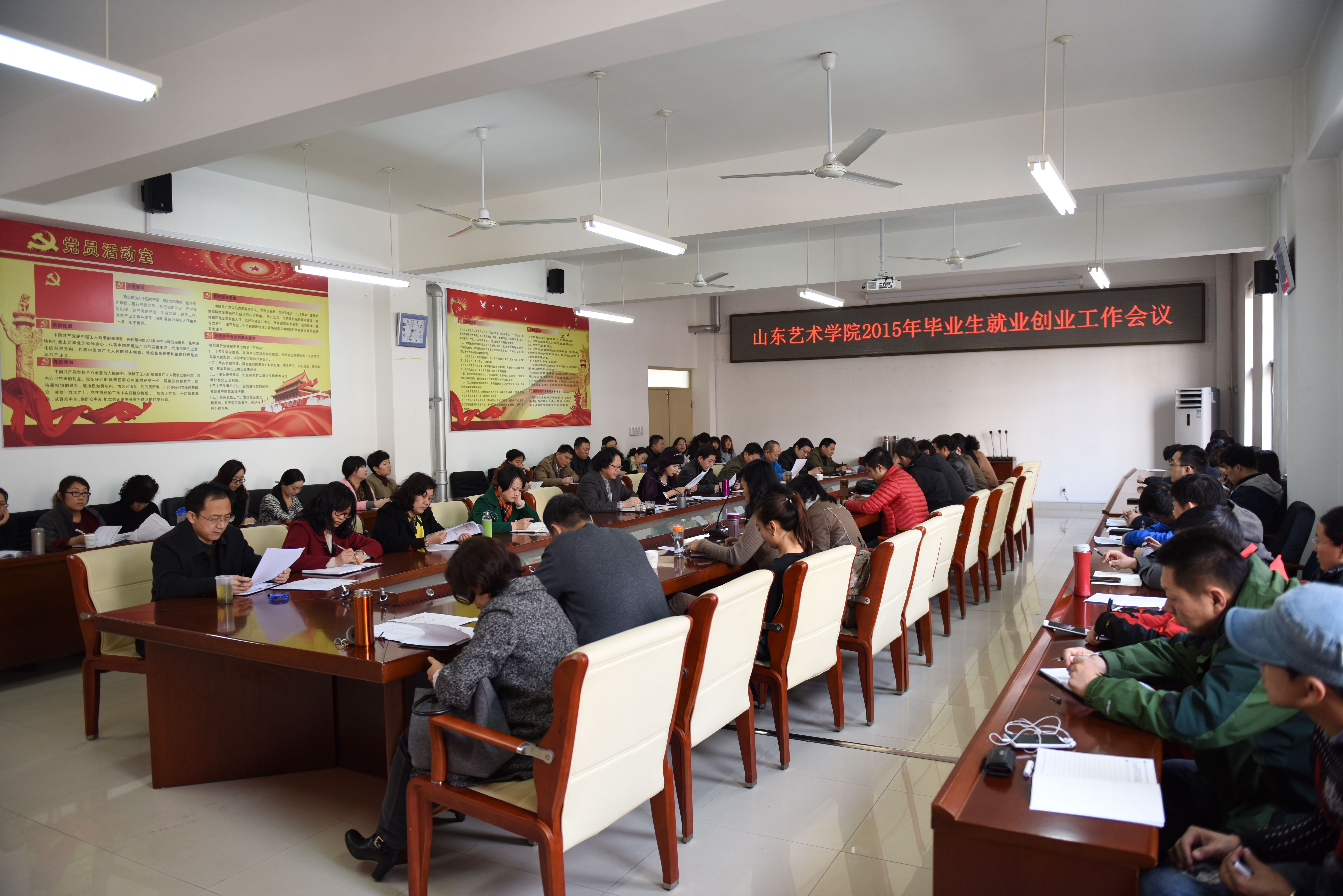 3月12日下午,山东艺术学院2015年毕业生就业创业工作会议在长清校区二楼会议室召开。党委副书记王力克主持会议并讲话,党办院办、宣传部、学生处、团委、艺术实践与创作处、研究生处等部门负责人,各二级学院党总支书记、副书记,全体辅导员及学生处全体工作人员参加会议。