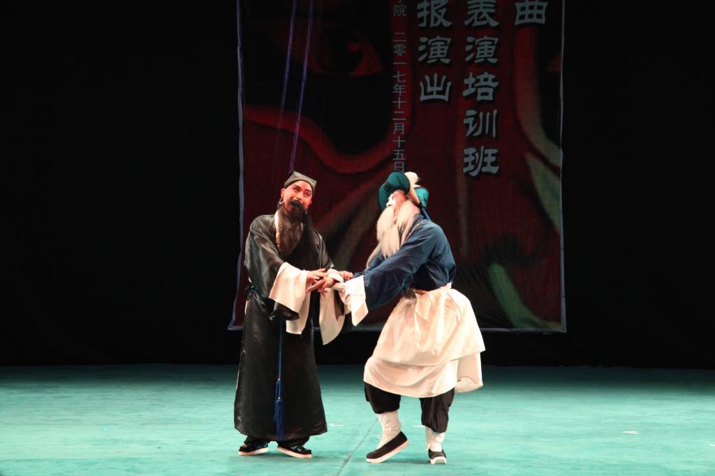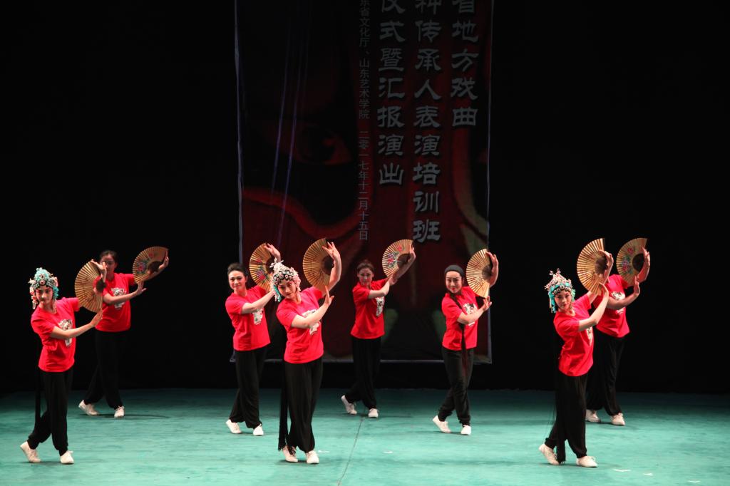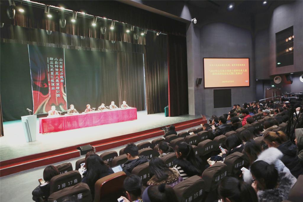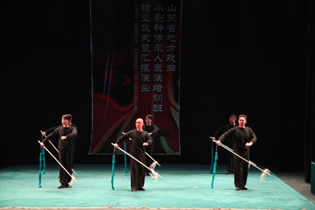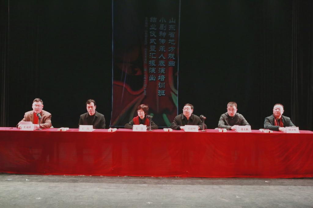 12月15日,中国非物质文化遗产传承人群研修研习培训计划.2017年山东省地方戏曲小剧种传承人表演培训班结业仪式暨教学成果汇报演出在长清校区圆形剧场举行。省文化厅非遗处处长姜慧、副处长王尚、副调研员蒋士秋,各地方院团领导,我校党委副书记孔祥华、艺术实践与创作处、戏曲学院负责同志及戏曲学院师生代表参加活动。仪式由戏曲学院院长王文清主持。