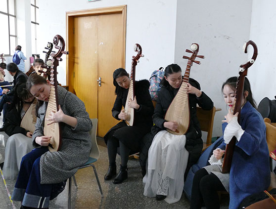 李云涛在会上讲到,目前省内各专业考试已经进入复试阶段,各项工作都在有序进行中。音乐学院总结历年招生考试工作的经验,对本次招生考试工作进行了科学合理的改进和调配:一是为确保考生及早获取考试信息,实行两条腿走路。考试信息除继续实行张榜公示外,增加了音乐学院官方网站和官方微信平台等多媒体渠道,第一时间发布考试日程安排、复试名单等。二是专业钢琴伴奏老师免费为考生提供伴奏。三是加强人性化服务。根据天气变化情况,为考生及家长提供温暖便利的候考区。2018年,音乐学院省外招生首次取消省外考点,省外考生到校本部参加初试和复试。现报考人数达到542人,其中演唱专业197人,管弦专业64人,民乐专业114人,钢琴专业49人,现代音乐118人。