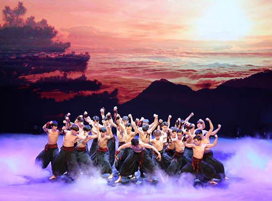 随后,大家共同观看了精彩的文艺演出。女子群舞《喜饽饽》用肢体语言把胶东地区人民热爱生活、幸福祥和的场面呈现在观众面前。随后,诗歌朗诵、合唱、京剧、音乐剧、弦乐合奏、二重唱、独唱、萨克斯合奏、舞蹈等节目精彩纷呈,博得观众一阵阵喝彩。青年合唱团带来了《come to the music》和《雪域向往》,用丰富多彩的调性转换和动力充沛的节奏编配演绎了现代音乐教科书式的精彩。荣获第十九届齐越朗诵艺术节优秀作品奖的散文诗朗诵《野草题辞》,激起了观众的时代激情。音乐剧《名扬四海》带领观众穿越回了青春洋溢的学生时代,回到了开学的那一天。青年弦乐团在全国第五届大学生艺术展演活动中荣获艺术表演类一等奖的好成绩,现场演奏的《霍尔堡组曲》让观众领略了山艺学子的精彩。男女二重唱《邀你一起去看桃花》,让观众为学生扎实的基本功喝彩。传统武戏《三岔口》片段在没有道白和唱腔的情况下,靠演员惟妙惟肖的表演,把剧情演释得淋漓尽致。王文清、张倩演唱的京歌《中国脊梁》让观众流连忘返。国家艺术基金资助项目《再唱沂蒙山》,用歌声颂扬沂蒙精神、红色基因,传递山东大地的文化讯息和齐鲁儿女的勤劳勇敢。青年萨克斯乐团带来的《民族节庆》和《婚礼舞曲》,用萨克斯细腻委婉、浑厚圆润的音色给晚会增添了浓重的节日气氛。晚会在曾荣获第九届中国舞蹈荷花奖校园舞蹈评奖作品“金奖”的男子群舞《脊梁》落下帷幕。
