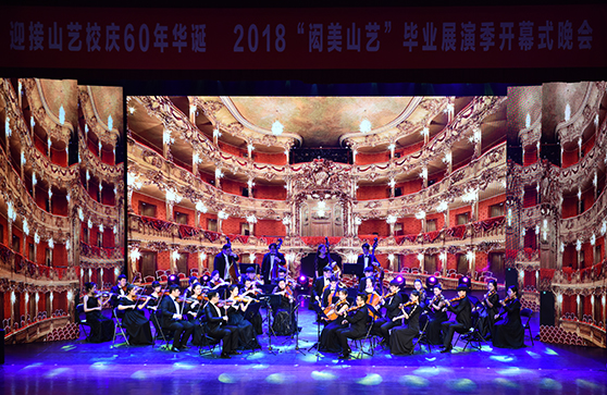 5月15日,山东艺术学院教育发展基金启动暨2018“闳美山艺”毕业展演季活动开幕式晚会在我校文东校区艺术剧场三楼大剧场隆重举行。