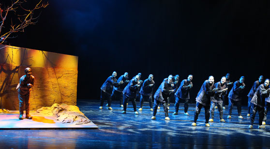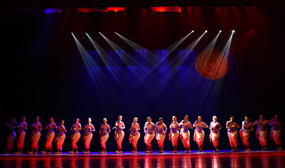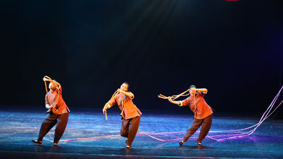 我校舞蹈学院的毕业生们用扎实的基本功、一个个精彩的章节演绎了一群勤劳、淳朴、善良、坚韧的胶东女人。她们作为女性的代表,勤俭持家、任劳任怨;她们面对生活的艰辛与磨难,总能报以微笑;她们不抱怨、不屈服,活在浪里撑起个帆,活在地里磨出了面;她们的精神与品质在当今社会生态下,无疑是一剂化解矛盾的良药。演出中一幕幕动人画面丝丝入扣,引人入胜,成功呈现了“胶东女人”的群体形象,赢得了现场观众的热烈掌声。
