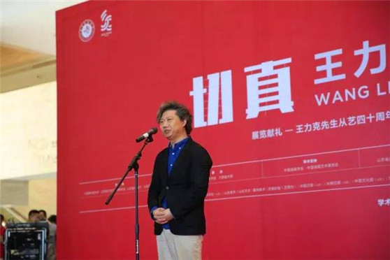 中国美术家协会研究部主任冯令刚代表中国美协分党组书记、驻会副主席、秘书长徐里致贺词。在贺信中,徐里代表中国美术家协会向展览的成功举办表示热烈的祝贺。徐里表示,王力克是中国写实油画的代表人物,是中国油画界的中坚力量。他热爱写实绘画,尊重传统文化,强调人文和理性精神,常年坚持从油画语言的本源和油画内涵的本质出发,在吸收西方油画精华的同时,深深地融入本土深厚的文化内涵,经过长期的艺术探索,形成了属于自己的独特艺术风格。他不仅在美术创作领域成果丰硕,还在美术教育、美术活动组织等方面均取得了喜人的成绩,为山东美术事业的长足发展做出了突出贡献。