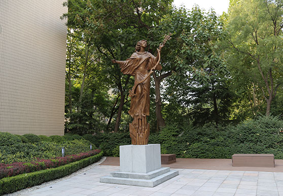 国庆期间,恰逢中华人民共和国成立69周年、山东艺术学院建校60周年前夕,俄罗斯艺术家维克多.舒瓦洛夫(VIKTOR SHUVALOV)为我校创作的《音乐女神》雕塑在文东校区落成。