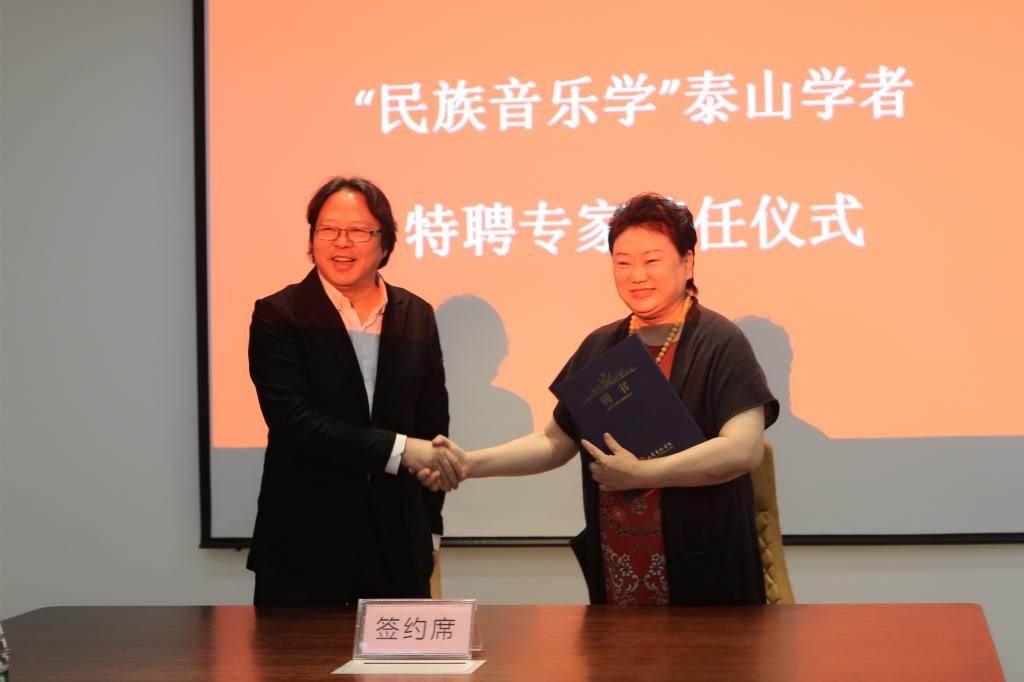 王力克在讲话中强调,“泰山学者”建设工程,是山东省委、省政府在高等学校实施的一项高层次人才队伍建设工程,是我省加强高等学校高层次创新型人才队伍建设和高水平学科建设的一项重要举措。这次民族音乐学“泰山学者”岗位续聘,是学校在“十三五”关键时期取得的又一标志性成果,不仅是刘晓静的光荣,更是山东艺术学院的光荣,说明学校在音乐学科领域坚持不懈的建设得到了肯定。“泰山学者”岗位的建设对山东艺术学院高水平的发展起着重要作用,从顶层设计的角度来讲,它标志着学校学科与专业的高度,在学校“双一流”建设与博士点申建工作中起着重要的作用,我们要搞好这项工作,各部门各单位要将高标准、高要求放在第一位,积极支持“泰山学者”岗位建设。希望在未来五年中,研究团队积极发挥作用,在科研工作中做出应有的贡献,为学校的高质量发展助力添彩。希望刘晓静教授充分发挥“泰山学者”特聘专家和岗位的示范、辐射作用,带动我校学科建设和学科梯队建设,努力建设高水平学术团队与富有竞争力的优势学科和科研基地。