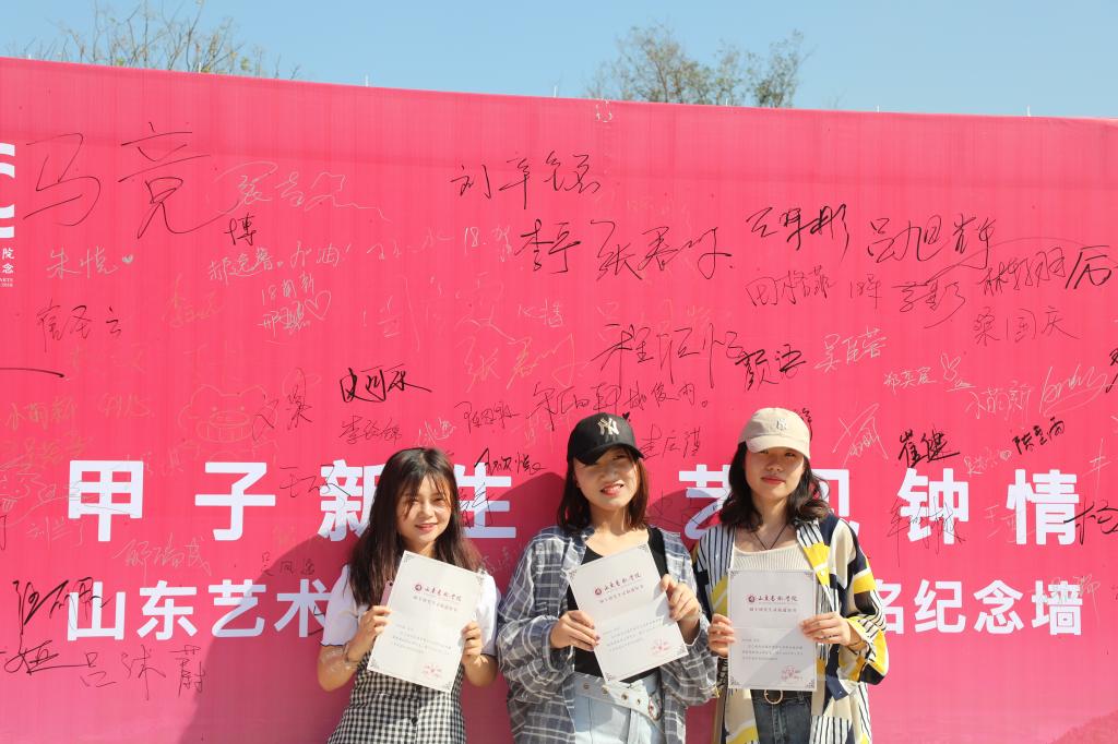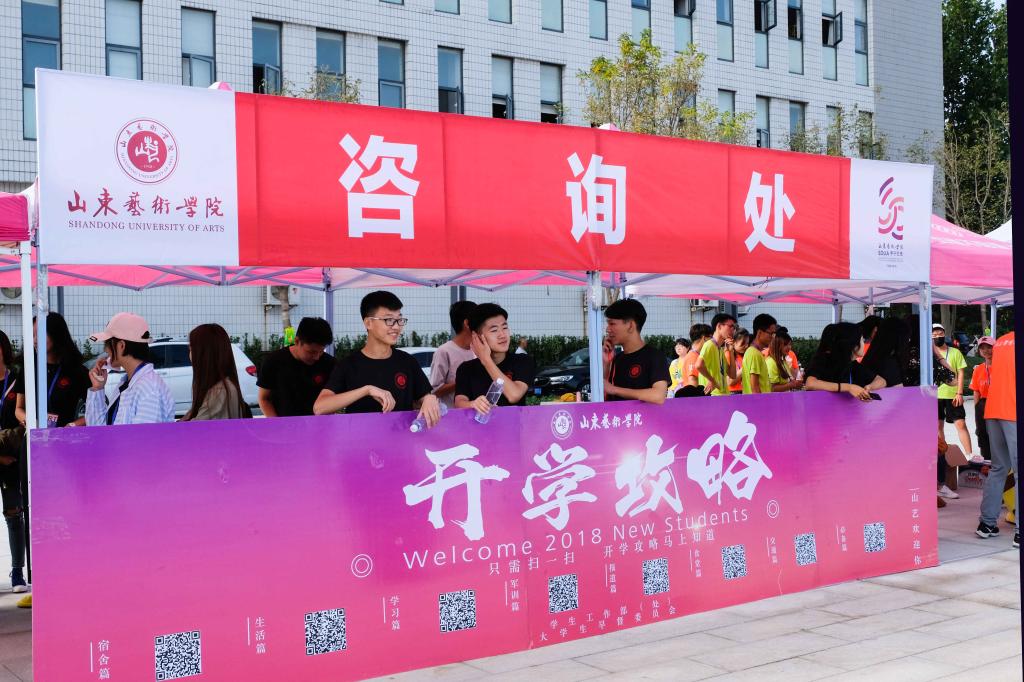 今年正值建校60周年华诞,学校相关部门、各二级学院开展了丰富多彩、形式活泼的迎新工作。现场设置醒目的路引标示;校门口设立了“甲子新生,艺见钟情”山东艺术学院2018级入学签名纪念墙,吸引了大量新生及家长纷纷驻足签字合影留念;“微信微博、学生证合影框”、“山艺闳约深美号G2018次车票”,让你不出校门,轻松登热点;“时间邮局,写给四年后的自己”,让新生给四年后的自己投寄明信片;部分校友当天返校、现身说法,招募实习人员;官微举办的抽奖活动送校园美景徽章;穿着布朗熊和小蜜蜂玩偶套装的志愿者与新生以及家长亲切互动……大家在轻松愉悦的氛围中充分感受到了山艺人的热情和魅力。家长和新生对我校的校园环境十分赞赏,用“漂亮、艺术、时尚、大气”表达他们的欣喜,“亲切、温暖、热情、耐心”表达出他们对山艺人的感激;“梦想、超越”是他们对自己的要求;“祝福、幸运”表达出他们对山艺建校60周年华诞的期盼。