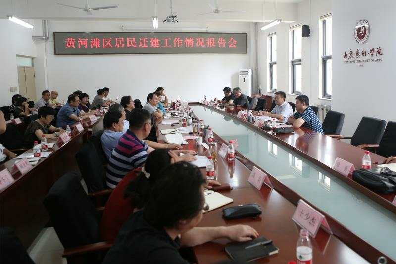 为贯彻落实省委书记刘家义同志来我校调研讲话精神,推进围绕黄河滩区开展艺术创作工作,7月12日,学校在长清校区办公楼二楼会议室举行黄河滩区居民迁建工作情况报告会。报告会专门邀请了省发改委农经处调研员、省黄河滩区脱贫迁建推进组负责人靳为公、省滩区迁建推进组项目管理组主任科员张长全做专题报告。学校党委书记马东骅主持会议,院长王力克、党委副书记孔祥华、纪委书记兰绍彤出席会议,各二级学院院长、副院长、教师代表,相关职能部门负责人参加会议。