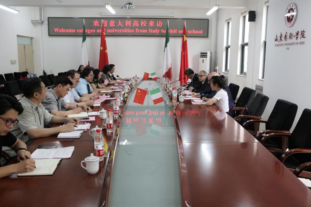王力克对来访客人表示热烈欢迎。他指出,学校高度重视国际化办学工作,其中与意大利间的交流合作是非常重要的内容。意大利作为文艺复兴发源地,其传统艺术教育雕塑、油画、文物修复方面在国际上享有很高声誉,时尚设计、室内家具设计也居世界前列,意大利的大学不仅古老而且充满活力,山东艺术学院作为一所综合性艺术院校,涵盖所有艺术类专业,为双方在艺术专业上的合作提供了广泛的基础。当今社会交流合作互相促进是发展的主流,他希望双方找到契合点,建立实质性校际关系,精心设计合作项目,扎实开展交流工作,促进两校教学科研水平和人才培养质量的提升,为两校深化人文交流和加深友谊做出努力并早日结出丰硕成果。