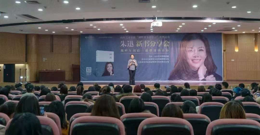12月1日,我校“湖畔读书思享会”活动在长清校区图书馆报告厅举行,央视著名主持人朱迅携新书《阿迅》来到现场,与400多名山艺学子畅谈人生经历和青春感悟。