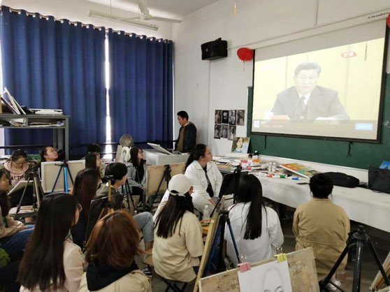 艺术管理学院2016级公共事业管理专业宫长山在收听收看总书记的重要讲话后激动地说,“我将牢记总书记对新时代中国青年提出的要求,不断丰富提升自己,把握主旋律背景下的艺术文化需求,更好地整合艺术资源,体现新时代山艺人蓬勃向上的精神风貌,不负青春,不负韶华!”