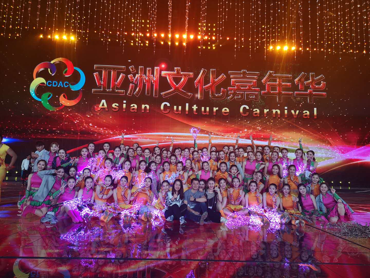 舞台上的完美演绎源自于舞台下的辛勤付出,在经历了前期近20天的排练后,4月27日,舞蹈学院师生带着学校领导的嘱托及期待,踏上了从济南开往北京的列车,奔向亚洲文化嘉年华的舞台。五月的北京天气多变,同学们克服困难,按要求刻苦排练。5月12日,学校党委书记马东骅专程赶到北京,代表学校看望参演师生,为大家加油鼓劲。同学们不负众望,全身心投入排练,配合编导对节目进行一次又一次修改完善,以完美的姿态绽放于嘉年华的舞台,博得导演组和全国观众一致好评。