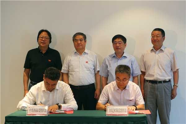 报告会前,学校领导亲切会见了报告团一行。济南市委组织部常务副部长马志勇,济南市委宣传部常务副部长、济南市精神文明建设委员会办公室主任周鸿雁,济南市委组织部干部二处处长王玉跃,济南市委组织部办公室主任张学宝参加会见。李刚在见面会上讲话,简要介绍了济南市围绕“做大做强文化产业”目标开展的人才支持政策和本次活动的背景;马东骅代表学校对报告团一行的到来表示欢迎和感谢,简要介绍了学校近年来围绕服务文化强省建设、打造“大强美富通”济南省会建设,大力弘扬齐鲁文化进行的艺术实践与创作工作。会上,学校党委组织部同市委组织部签署了高素质专业化人才队伍建设合作协议。
