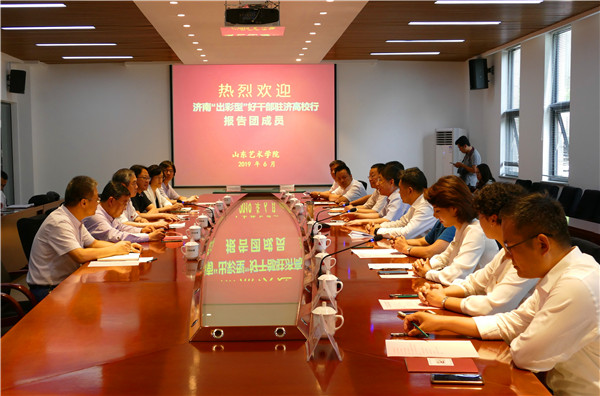 6月13日,济南市委常委、组织部部长李刚率领“济南‘出彩型’好干部驻济高校行”巡回报告团走进山东艺术学院,在长清校区图书馆报告厅举行报告会。山东艺术学院党委书记马东骅,院长王力克,党委副书记孔祥华,纪委书记胡凤莹,党委委员、组织部部长、宣传部部长苏茂兴,处科级干部、师生代表400余人参加活动。
