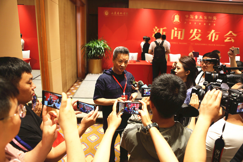 在媒体提问环节,叶小钢、阎维文、迪里拜尔、王宏、李天昊、王力克就记者提问的本次选拔赛的评委是如何产生的、参赛曲目是怎么确定的、参赛选手选拔都有哪些方式、为什么把首次现场选拔赛放在山东、山艺承办金钟奖这样全国性的大赛对学校的发展有什么影响等问题进行了解答。叶小钢、阎维文、迪里拜尔接受了媒体采访。