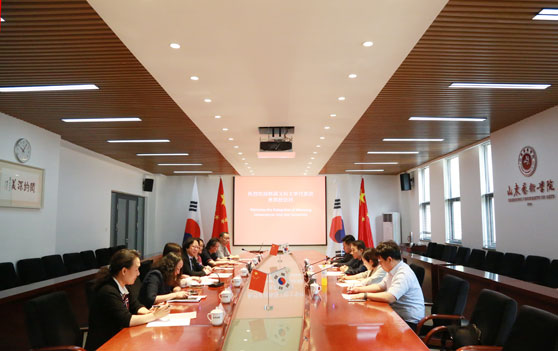 6月17日,韩国又松学园理事长金圣经、又松大学副校长甘瑞瑗一行来我校访问。院长王力克在长清校区办公楼二楼会议室会见了来访客人,双方就两校项目合作情况及今后发展方向进行了深入交流。国际交流合作处、教务处、国际艺术交流学院负责同志参加座谈。