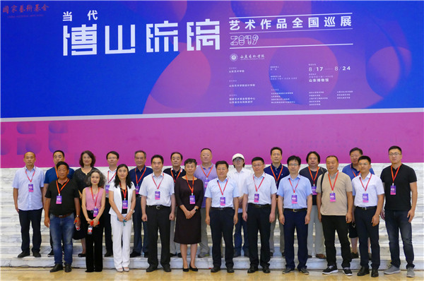 8月18日,山东艺术学院主办的国家艺术基金2019年度传播交流推广资助项目“当代博山琉璃艺术作品全国巡展”最后一站济南站开幕式暨学术研讨会在山东博物馆举行。山东艺术学院副院长杨西国,山东省教育厅体卫艺处处长孙乐为,山东省文化和旅游厅艺术处处长张东林,中共淄博市博山区委常委、宣传部部长高健,齐鲁工业大学艺术学院院长刘木森,山东工艺美术学院现代手工艺学院院长赵进,山东女子学院艺术学院院长张利,山东工艺美术学院教授李霁、李岱玫,山东一亩样田文化传播有限公司董事长陈苹,淄博市博山区文化研究院院长、博山陶瓷琉璃行业服务中心主任刘莲静,山东爱美琉璃有限公司董事长孙云浩,博山琉璃行业的中国琉璃艺术大师、山东工艺美术大师等作者代表参加活动。开幕式及学术研讨会由山东艺术学院设计学院副院长远宏教授主持。