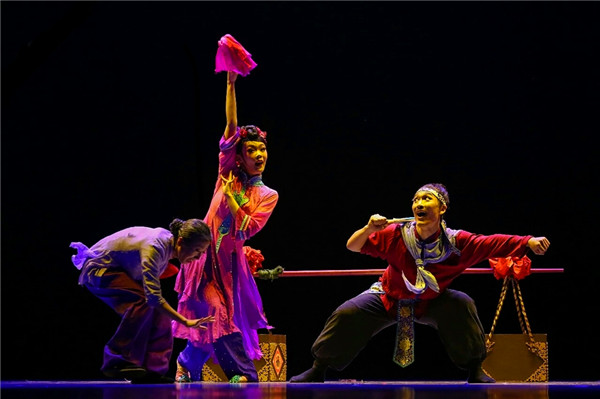 作品《扶犁晚歌》通过一人、一牛、一犁,以简胜繁地勾勒出一幅晚霞余晖,牛儿奔勃,老农扶犁,且行且歌的生活图景,继而诠释了人与自然和谐相处的生存智慧。作品《移山》通过对山东鼓子秧歌动作元素的提炼与重构,生动刻画了一群粗犷豪放、坚韧不拔的“移山者”的形象,并将开拓进取、持之以恒的移山精神通过舞蹈语言最大化地彰显与释放。在8月15日的技术技巧组合展示部分中,山艺学子赵宇杰代表学校展示了海阳秧歌技术技巧,将山东本土独特的海阳秧歌奉献给全国观众。