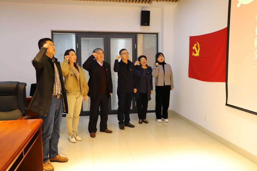 在支部书记带领下,全体党员面对鲜红的党旗,举起右手重温入党誓词,表达不忘初心、牢记使命的坚定信念和决心。