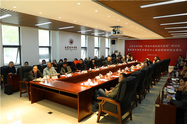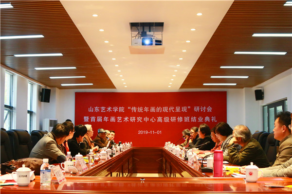 11月1日,山东艺术学院“传统年画的现代呈现”研讨会暨首届年画艺术研究中心高级研修班结业典礼在山东艺术学院长清校区举行。山东艺术学院院长王力克,山东艺术学院教授、年画艺术研究中心荣誉主任单应桂,天津大学冯骥才文学艺术研究院、中国木版年画研究中心副主任、副教授王坤,潍坊杨家埠木版年画院院长马志强,聊城大学教授、聊城市民间文艺家协会名誉主席张宪昌,山东工艺美术学院教授于新生,山东艺术学院教授、山东民俗学会副会长李丕宇,山东工艺美术学院副教授吴军,山东省文艺创作研究院文艺理论研究中心主任、美术批评家郑岗,山东省女书画家协会副主席、单应桂基金会副理事长任海宁,单应桂艺术基金会秘书长解洪臣,高密市文化馆书画院院长王东,聊城大学美术学院副教授郝春燕,年画艺术研究中心名誉教授臧恒望、季乃仓,天津大学冯骥才文学艺术研究院、中国木版年画研究中心张宗健,山东艺术学院美术学院副教授曲刚、美术史论专业教师刘海平,单应桂基金会理事长、年画艺术研究中心副主任秦镜,年画艺术研究中心副主任、山东艺术学院教授张丽华,年画艺术研究中心副主任、山东艺术学院副教授赖冰梅出席活动。结业典礼由山东艺术学院美术学院副院长孙磊主持。