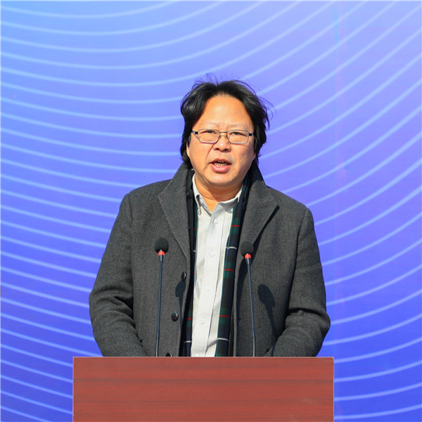 王力克在奠基仪式上致辞,代表山东艺术学院全体师生,向一直以来关心和支持学校建设发展的各级领导、各位嘉宾表示最真挚的感谢!对爱心企业的支持表示衷心的感谢!向齐心协力推进基地建设的全体建设者致以最诚挚的敬意!他指出,奠基仪式标志着山东艺术学院的建设发展迈入了一个崭新的阶段,也是学校解放思想、牢记初心、为山东省文化建设和影视产业发展的担当和使命,必将作为一个重要篇章载入山东影视产业发展史册。他介绍了山东艺术学院的历史文脉,教学、科研、艺术实践与创作的基本情况,作为山东省博士授予立项建设单位,学校正在沿着建设特色鲜明、国内一流的现代化高水平艺术大学的道路砥砺前行。作为山东省高等影视教育的排头兵,山东艺术学院具有丰富的影视文化技术和人才资源,2018年5月,我校与山东影视传媒集团联合成立了山东艺术学院电影学院,服务我省“全国领先、世界水平的影视产业基地”建设。今年9月,学校与青岛市西海岸新区、大都美育教育科技集团有限公司经过友好协商,签署了《山东艺术学院电影艺术产学研基地项目合作协议》。电影艺术产学研基地将努力实现青岛区位优势、产业集群优势和学校学科专业优势、人才资源优势,互生共荣、充分结合,通过校地共建、校企合作、产教融合的全面实施,通过引入国际高端、国内优质教育资源,实现与我省影视产业发展的无缝对接、深度融合,既推动学校影视教育增强内涵、办出特色、争创一流、实现高质量发展,又持续不断地为国家特别是山东影视产业发展输出高端艺术人才、高水平技术人才和专业管理人才,助推我省影视产业迅速发展。他表示,学校将以此为新的发展契机,以更广阔的视野、更开放的姿态和更坚实的步伐,努力把电影艺术产学研基地建设成为特色鲜明、设施先进、环境优美、国内领先的现代化基地,为青岛市和西海岸新区经济文化建设发展做出贡献。他恳请青岛市委市政府、西海岸新区、大都美育教育科技集团有限公司一如既往地关心、支持学院建设发展,共同把山东艺术学院电影艺术产学研基地建设成为校企合作紧密化、服务产业精准化、办学水平国际化的标杆和样板,为推动全国和山东影视产业繁荣发展做出新的更大贡献!