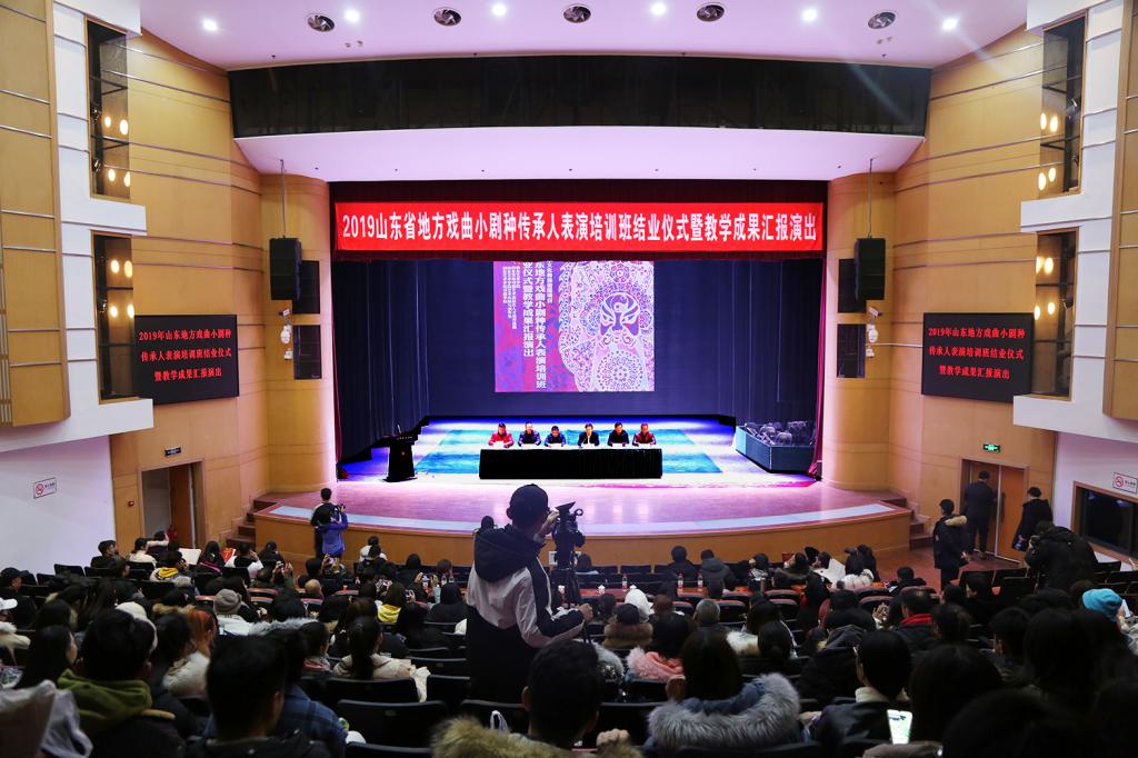 12月4日,中国非物质文化遗产传承人群研修研习培训计划·2019年山东省地方戏曲小剧种传承人表演培训班结业仪式暨教学成果汇报演出在山东艺术学院文东校区艺术剧场举行。山东省文化和旅游厅非遗处处长刘朋鑫,山东艺术学院副院长杨西国出席活动,各地方院团代表,学校艺术实践与创作处负责人及戏曲学院师生代表参加活动。结业仪式由戏曲学院院长王文清主持。