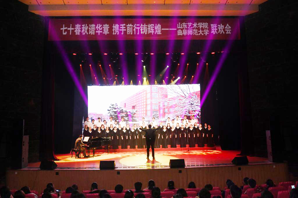 12月7日,我校与曲阜师范大学共同举办的“七十春秋谱华章,携手前行铸辉煌”联欢会在曲阜师范大学大学生活动中心精彩上演。山东省教育厅体卫艺处处长孙乐为,曲阜师范大学党委书记戚万学,副校长冯冲、胡钦晓,我校党委书记马东骅、院长王力克等领导出席晚会。两校师生欢聚一堂,共叙友谊,共同唱响新时代华美篇章。