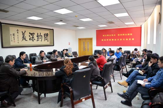 近日,山东艺术学院2014年度艺术创作立项评审会议在文东校区综合楼二楼会议室召开。高启光副院长出席会议,评审委员会专家参加会议。