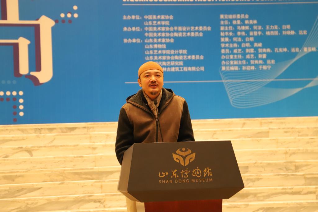 白明在致辞中首先对山东艺术学院10年来对组织展览和学术工作表示感谢。他讲到,邀请展最大的特点是作品让大家感觉既熟悉又陌生。熟悉是来源于艺术家们对传统文化的学养、对著名艺术家的熟知、对艺术专业创作的了解。陌生来源于艺术家们在追求艺术本质的过程中新的发现与创作,特别是通过跨界融合带来的陌生视觉感受。对泥土、火焰的单一认知成就了中国陶瓷艺术的辉煌,让艺术家们成为受益者的同时,又成为困惑者。希望艺术家们重新认知泥土、火焰这些古老材料的表情和性格,让传统材料在新的艺术领域空间中,表现出新的能量与意志,焕发出新的生命力。面向未来,将继续扩大陶瓷艺术的艺术界别、国籍的范围,推动陶瓷艺术创作更好的进行艺术表达。