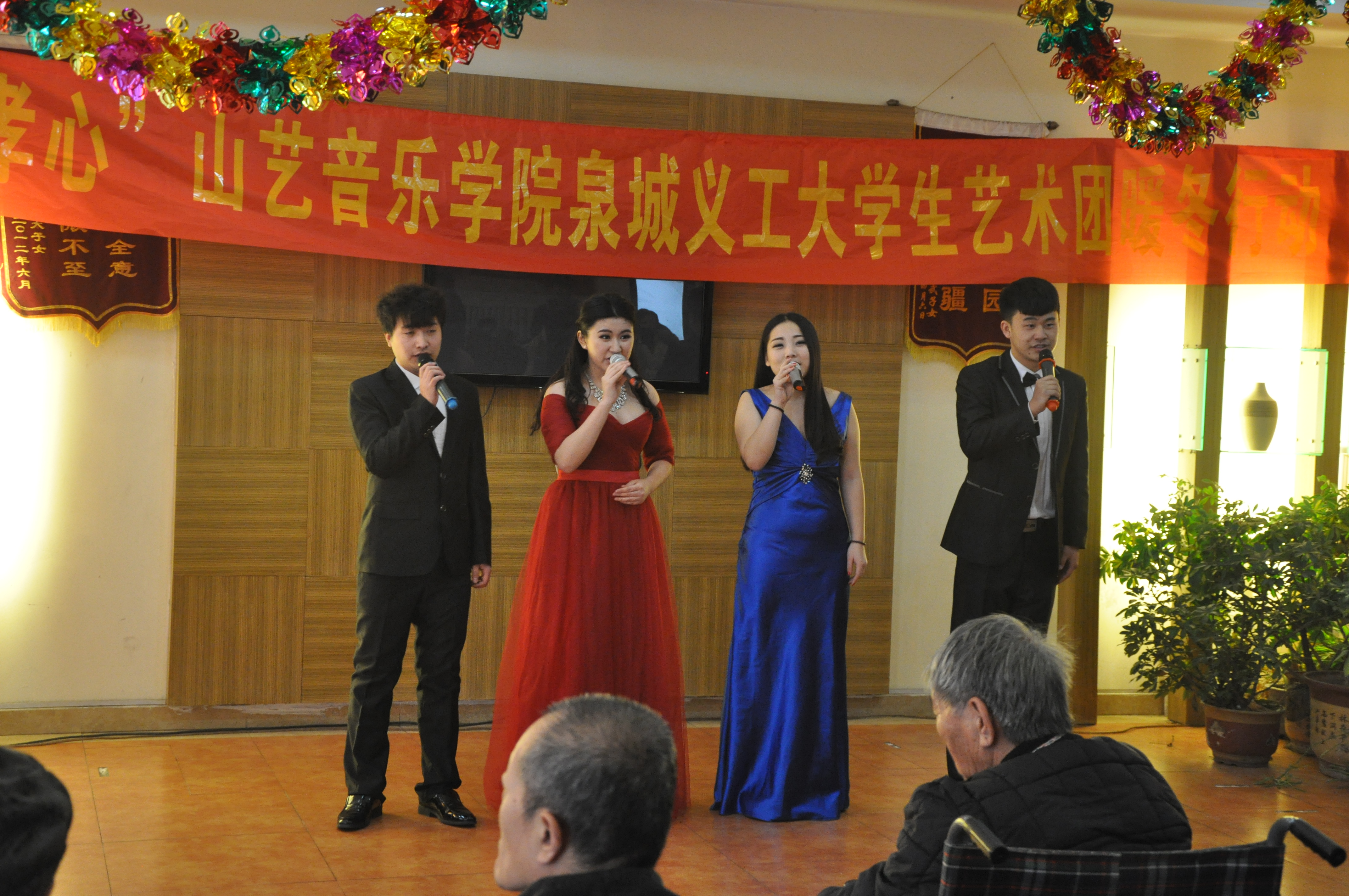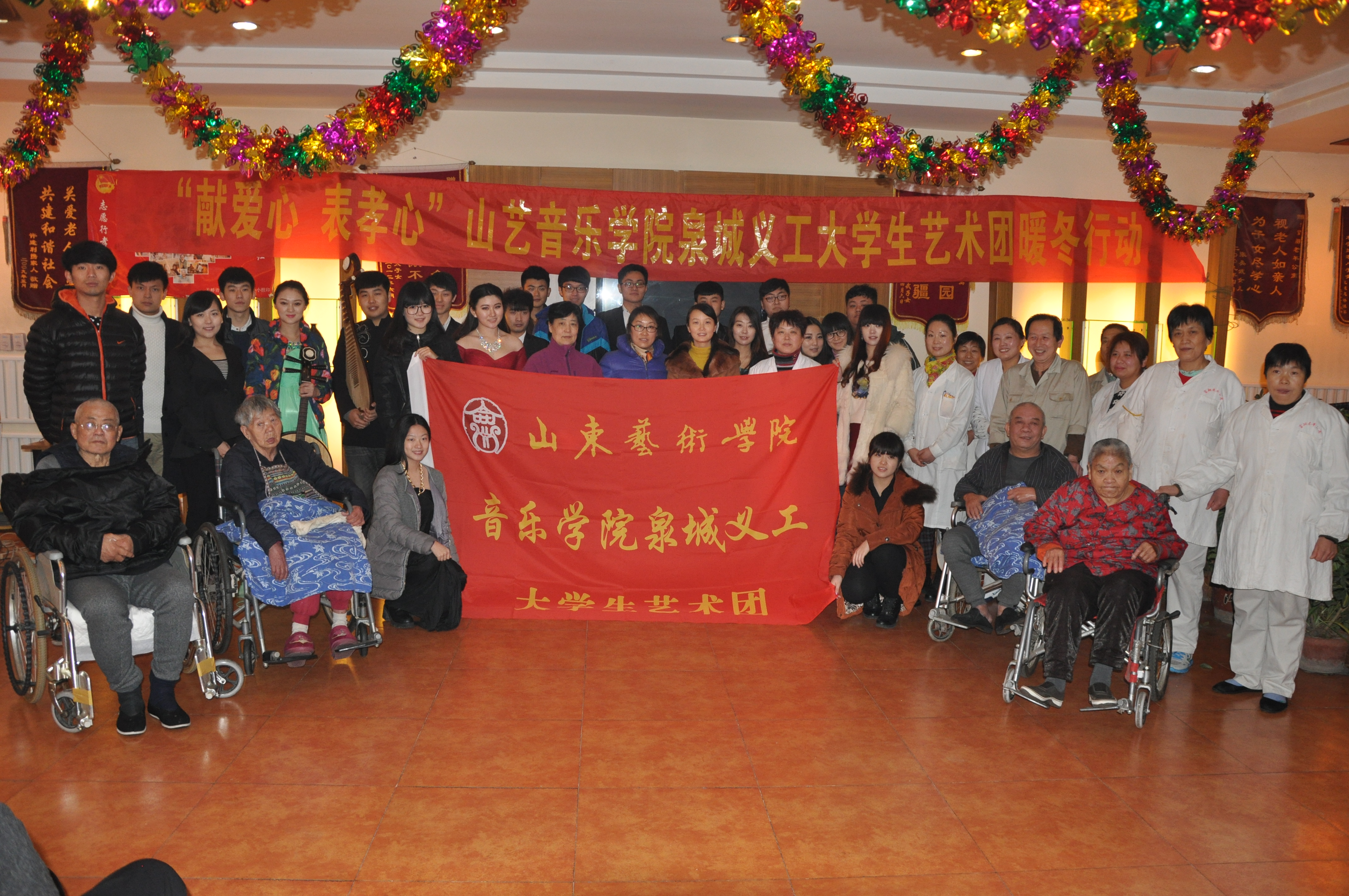 山艺团委与天桥区团委开展首次校地合作,举行“献爱心,表孝心”暖冬行动。2015年1月16日,山东艺术学院音乐学院泉城义工大学生艺术团来到济南富翔老年公寓,开展以爱心陪护和慰问演出为主要形式的志愿服务,用爱心诠释敬老爱老的社会责任感,用文艺传递向上向善的核心价值观。