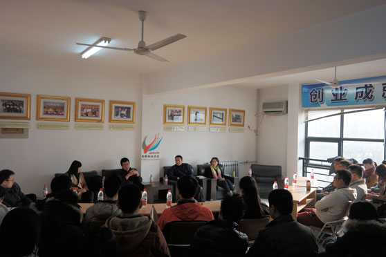 12月24日上午,我校“青春创业沙龙”在就业指导中心创业实训室举行。我校创业导师,优秀校友齐麟与学生创业团队负责人、有兴趣创业的学生以及学生处相关人员参加。