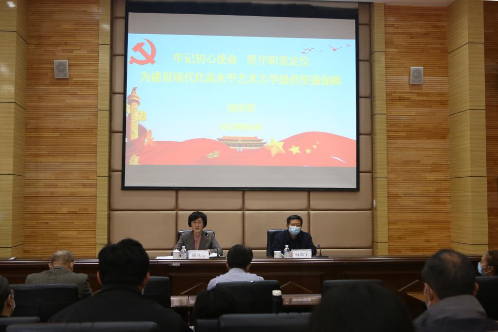 在下午的会议上,胡凤莹作了题为《牢记初心使命 坚守职责定位 为建设现代化高水平艺术大学提供坚强保障》的工作报告。工作报告共分两个部分。第一部分是2019年工作回顾。一是坚持学懂弄通做实习近平新时代中国特色社会主义思想,“两个维护”更加自觉具体。二是深化纪检监察体制改革,推动纪检监察工作规范化、法治化。三是坚持问题导向,持之以恒落实中央八项规定精神。四是做实做细日常监督,全面提升监督实效。五是坚持实事求是,依规依纪依法开展审查调查。六是加强制度约束,完善监督制约体系。七是注重精准施教,把守纪律讲规矩摆在更加突出位置。八是抓好自身建设,打造过硬纪检监察干部队伍。随后阐述了在工作中形成的一些认识和体会。第二部分是2020年主要工作。一是坚持真学真信真用习近平新时代中国特色社会主义思想,始终保持正确政治方向。二是聚焦“两个维护”,着力推动政治监督具体化常态化。三是持续深化纪检监察体制改革,切实把改革成果转化为监督效能。四是紧紧围绕权力运行,做深做细日常监督。五是精准有力整治“四风”,推动党风政风持续好转。六是坚持“严”的主基调,筑起惩治的坚实“后墙”。七是推进廉政文化建设,积极营造崇德尚廉浓厚氛围。八是全面加强自身建设,打造高素质专业化纪检监察铁军。