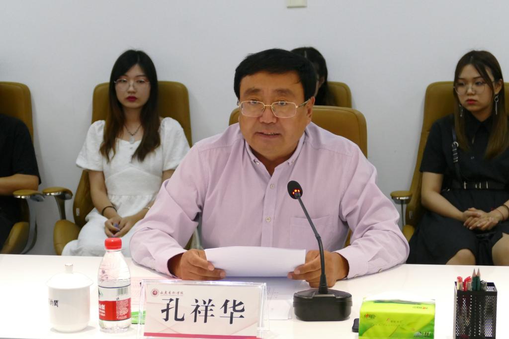 孔祥华代表学院党委书记马东骅、院长王力克向黄屹峰一行和与会校友表示热烈欢迎,向首届屹峰奖学金的46位获奖者表示祝贺。他指出,黄屹峰先生多年以来始终倾心关注、倾力支持母校的建设与发展,通过捐资支持学校青年教师教学公开课活动,捐建教学设施改善师生学习工作生活环境,支持母校的大学生创新创业和为学生提供就业岗位,为母校60岁生日捐种苗木、捐赠物品、捐资100万设立“屹峰奖学金”等善举,表达了作为校友对母校的真挚情感和心系母校建设发展、热心艺术教育事业的真切情怀。学校为培养出像黄屹峰先生这样的杰出校友感到光荣骄傲,更为黄屹峰先生心系母校建设发展、心怀母校学子成长而感到欣喜自豪。奖学金的设立是繁荣艺术创作、推进艺术创新的善举,与时代和社会对于艺术教育和优秀艺术人才培养的要求高度契合,对于调动和激励各学科专业勇于创新、努力进取、提升艺术人才培养质量,推动学校艺术创作繁荣有着积极而重要的作用。学校十分重视屹峰奖学金的规范管理和作用发挥,妥善管理,专款专用,确保善款使用公开、透明,发挥最大效益,在奖学金评选期间,学校制定了评选办法,成立了独立的评审委员会,进行了公正评审。他充分肯定了获奖学子的艺术创作,勉励大家要认真学习和贯彻习近平总书记在全国文艺工作座谈会上的重要讲话精神,坚守艺术初心,坚持不懈追求,在艺术之路上不断前行,以更优异的成绩,成就更加灿烂的艺术人生。