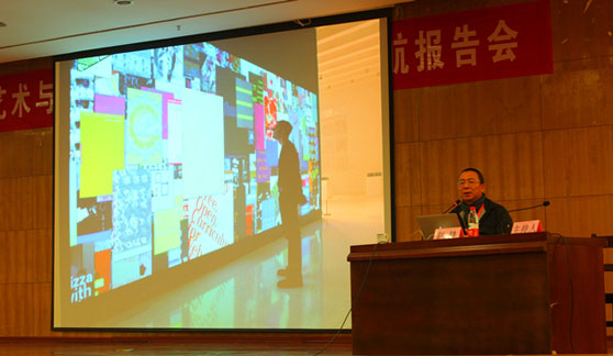 赵健教授作了题为《设计:一些现象与问题》的报告。他从清华大学教学实践的三个点即价值塑造、能力培养、知识教授出发,强调价值创造应成为教育的重心,教育首先要培养人,其次是培养人才。他从当今互联网时代下的传统设计生存境况出发,结合中外设计案例,提出设计在当今社会的现象和产生的问题。他认为,当今设计现象主要表现在大规模的城市建设和消费型社会的迅速形成,使得设计在其中所扮演的角色特殊化。在中国高等教育体系中,而需求则使教育教学框架不够明确。现今设计的问题主要表现在专业层面,难以发挥与社会的有效沟通,设计在文化价值观和设计实践层面缺乏自觉与反思,中国现今的设计需要一个有实际意义的本土化的设计研究,“设计”与“研究”的对立,设计教育不善于从其他学科的角度看问题,设计亟需成为开放的学科。他强调,设计应从一个全方位的角度去看待,创意、创新取决于你有多开放,我们应重新思考视觉传达设计的社会价值,并且审视设计的自觉和反思。