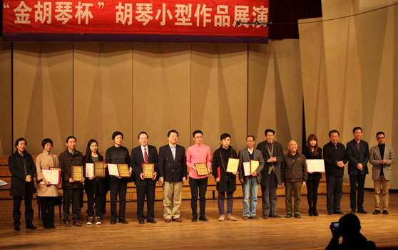 近日,由中国民族管弦乐学会胡琴专业委员会和中央音乐学院民乐系、江苏省演艺集团联合主办的2014“金胡琴杯”新作品展演比赛在北京中央音乐学院音乐厅举行,我校张令杰教授、武凯老师创作的二胡曲《鲁韵》荣获优秀作品奖;张令杰、李百华教授改编的二胡曲《苦菜花》荣获作品奖,我校李百华教授受大赛组委会之邀参加此次活动并为获奖者颁奖。