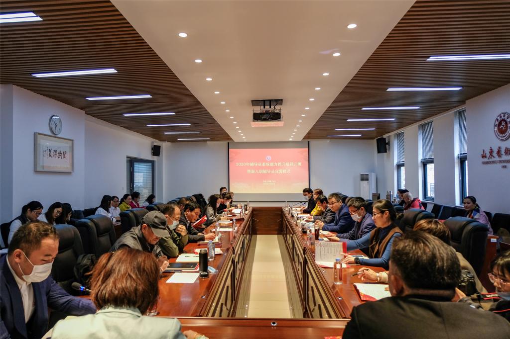 10月30日,学校在长清校区举行2020年辅导员素质能力提升培训开班暨新入职辅导员宣誓仪式。学校党委副书记孔祥华出席开班仪式并为辅导员授课。学校党委委员、组织部部长、宣传部部长苏茂兴,学生处、团委、人事处负责人,各二级学院党总支副书记、团总支书记、学工办主任、全体辅导员参加仪式。仪式由学生处处长吕春玉主持。
