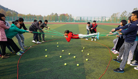 此次团体心理训练活动主要由2014级艺术批评和文化遗产保护的50多名同学参与,活动内容包括:突破雷阵、合力排弹、蛟龙出海、衔杯接力和跳大绳。陈贵玲老师把所有学生分为了两组进行团体游戏,其内容既考验了大家的动手能力又考察了同学们的协作能力。游戏中,很多性格内向的同学因为要参与到活动中去,不得不主动与别的同学互相商量办法,从而学会在心理上更好的接纳别人。
