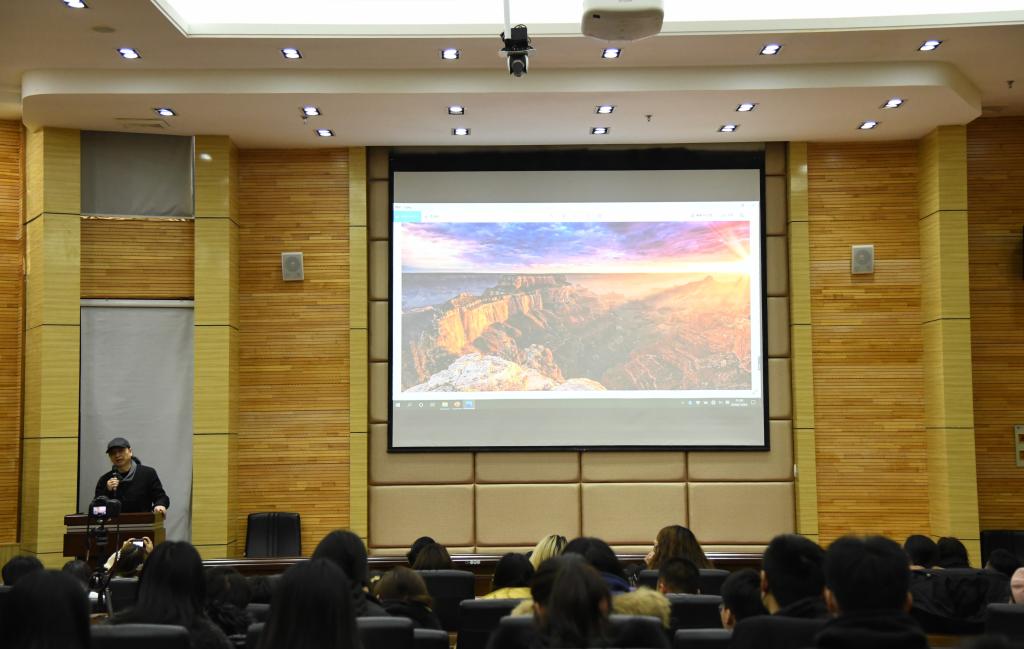 蔡玉水先生播放了个人艺术创作纪录片《双泉双泉——艺术家蔡玉水的乡村复兴之梦》,结合个人的从艺经历,通过一个个鲜活生动的故事,分享了创作心路历程,阐释了爱与艺术之间的关系,表达了艺术的使命是爱的使命,试图唤醒艺术工作者对于艺术的爱与执着,引发大家对现实生活的思考。蔡玉水先生语言幽默生动,质朴纯真。他的作品不拘泥于形式,视角独特,情感细腻,唯一不变的主题是对爱的讴歌,体现出高度的社会责任感与浓厚的人文关怀,给人以强烈的艺术震撼。现场提问环节,蔡玉水先生耐心细致地解答了同学们在艺术之路上的许多困惑。现场气氛热烈,掌声阵阵,同学们受到极大鼓舞,纷纷表示收获良多。