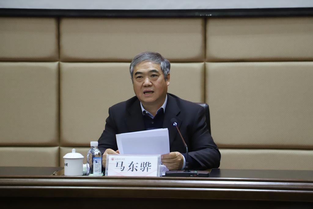 在听取了各党总支书记述职后,马东骅作点评讲话,肯定了各党总支书记2020年履行全面从严治党责任和抓基层党建工作取得的成绩。他指出,2020年学校党委按照新时代党的建设总要求、新时代党的组织路线和省委安排部署,积极应对新冠肺炎疫情严峻挑战和高质量发展艰巨任务,以党的政治建设为统领,全面推进党的政治建设、思想建设、组织建设、作风建设、纪律建设,把制度建设贯穿其中,全面提高学校党的建设科学化水平。2020年度,全校党建工作成效明显,基层党建工作责任更加明确,工作基础更加扎实,工作特色更加鲜明。马东骅同时指出了学校各基层党组织在履行全面从严治党责任和抓基层党建工作中存在的一些问题和不足,并指明了今后的努力方向。
