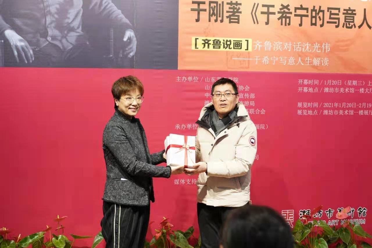 山东艺术学院美术学院副院长沈颖代表《于希宁的写意人生》的作者于刚向于希宁艺术馆赠书。