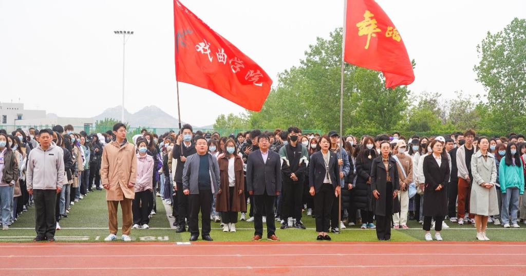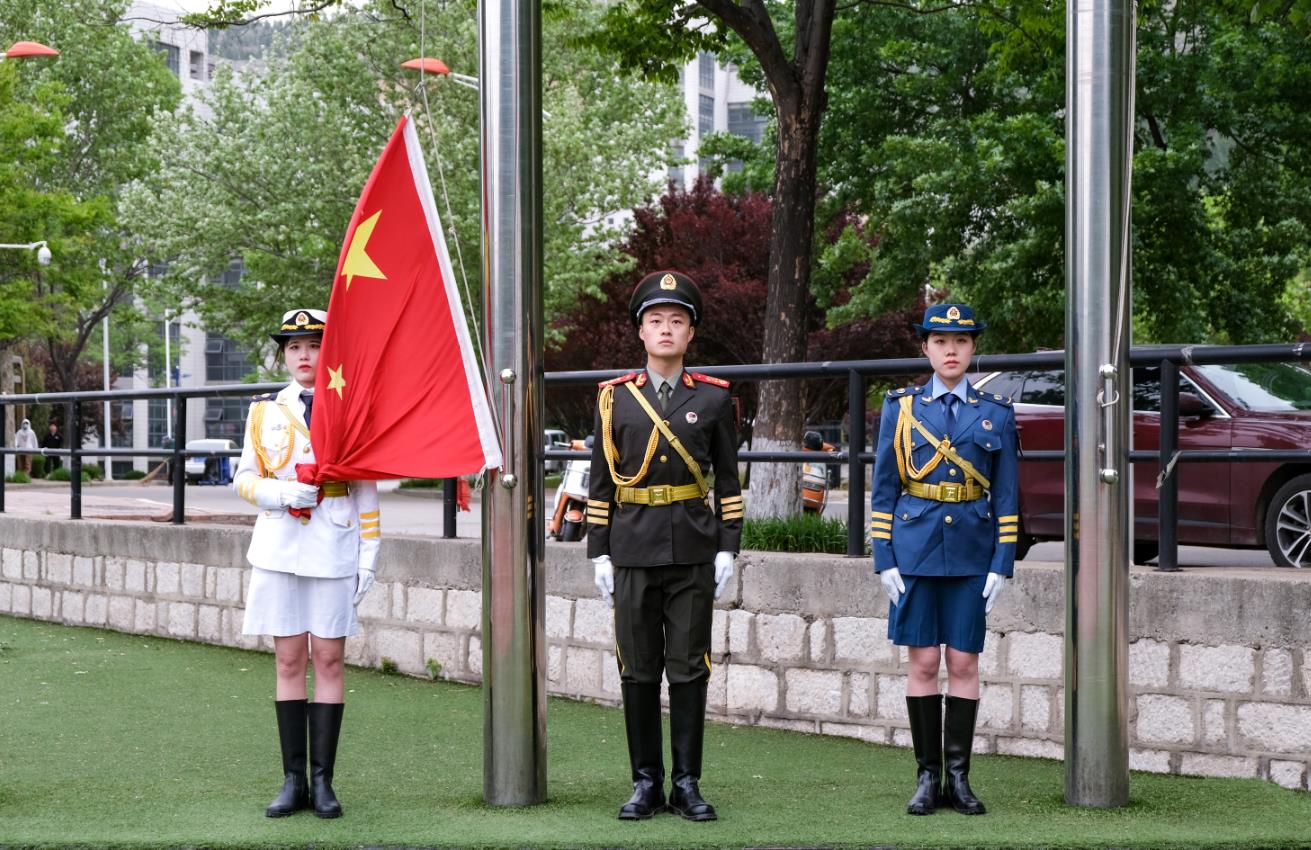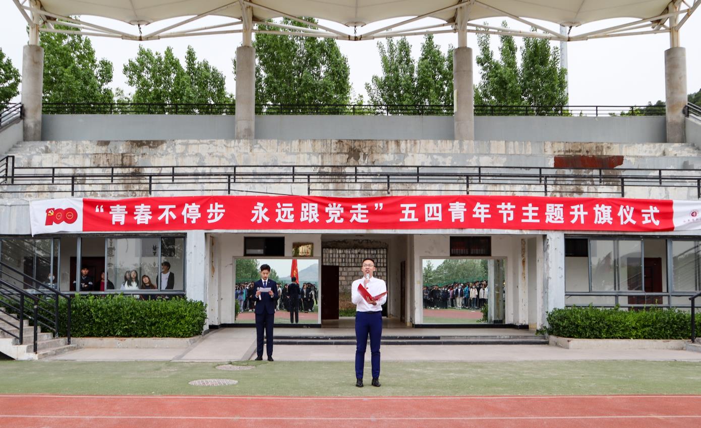 4月29日早晨,我校在长清校区田径场举行“青春不停步,永远跟党走”五四青年节主题升旗仪式,党委副书记孔祥华出席活动,学生工作部(处)、武装部、团委负责人,长清校区各二级学院值班老师和2000余名学生参加升旗仪式。