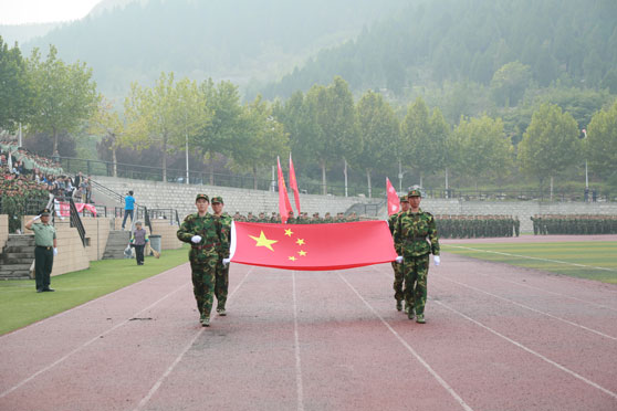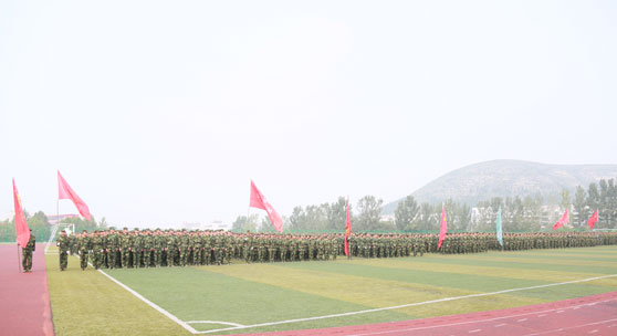 济南军区72556部队副团长李道武在讲话中肯定了同学们在军训中取得的训练成绩和体现出的精神风貌,并希望同学们在大学四年中,以军训的精神和良好的心态去迎接人生道路上的考验。
