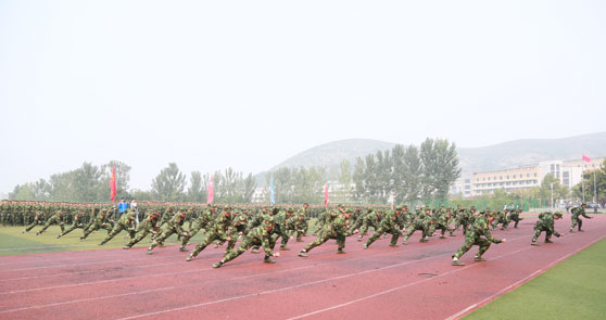 开学典礼在隆重的升国旗、唱国歌仪式中拉开帷幕。院长张志民依次检阅了受训方队。随后,身着迷彩的2700余名新生组成的27个方阵依次通过主席台进行分列式表演,其后进行了精彩的军训课目汇报表演。同学们整齐的步伐、嘹亮的口号、饱满的热情、高昂的气势、威武的军姿,展示了良好的军训成果与精神面貌,博得在场领导和观众的阵阵掌声。