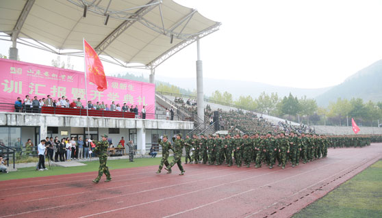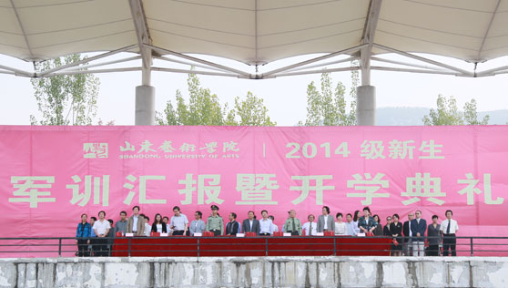 9月26日上午,我校2014级新生军训汇报暨开学典礼在长清校区体育场举行。校党委书记李宗伟,院长张志民,党委副书记王力克,副院长刘大力、刘晓静、高启光,济南军区72556部队副团长李道武,各部门负责人、各二级学院院长、党总支书记、副书记和全体辅导员以及全体本专科、研究生新生参加了开学典礼。开学典礼由副院长刘大力主持。