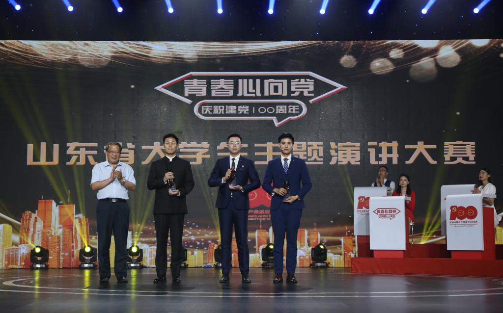 6月17日,由山东省教育厅、山东省语言文字工作委员会主办,山东省语言文字工作委员会办公室、山东教育电视台承办的“青春心向党”大学生庆祝建党100周年主题演讲大赛总决赛在山东教育电视台举行,我校推荐的戏剧学院孙啟翔、王瑞基、李耀国三位同学,分别获得冠军、亚军和一等奖。