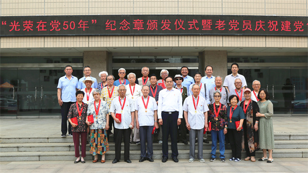 根据中共中央办公厅《关于做好“光荣在党50年”纪念章颁发工作的通知》要求,2021年首次颁发“光荣在党50年”纪念章,颁发给健在的截至2021年7月1日党龄达到50周年、一贯表现良好的党员。学校党委高度重视此项工作,经认真统计,核实表现情况、公示、集体研究,并报省委教育工委审核,学校共有45名老党员获得“光荣在党50年”纪念章。