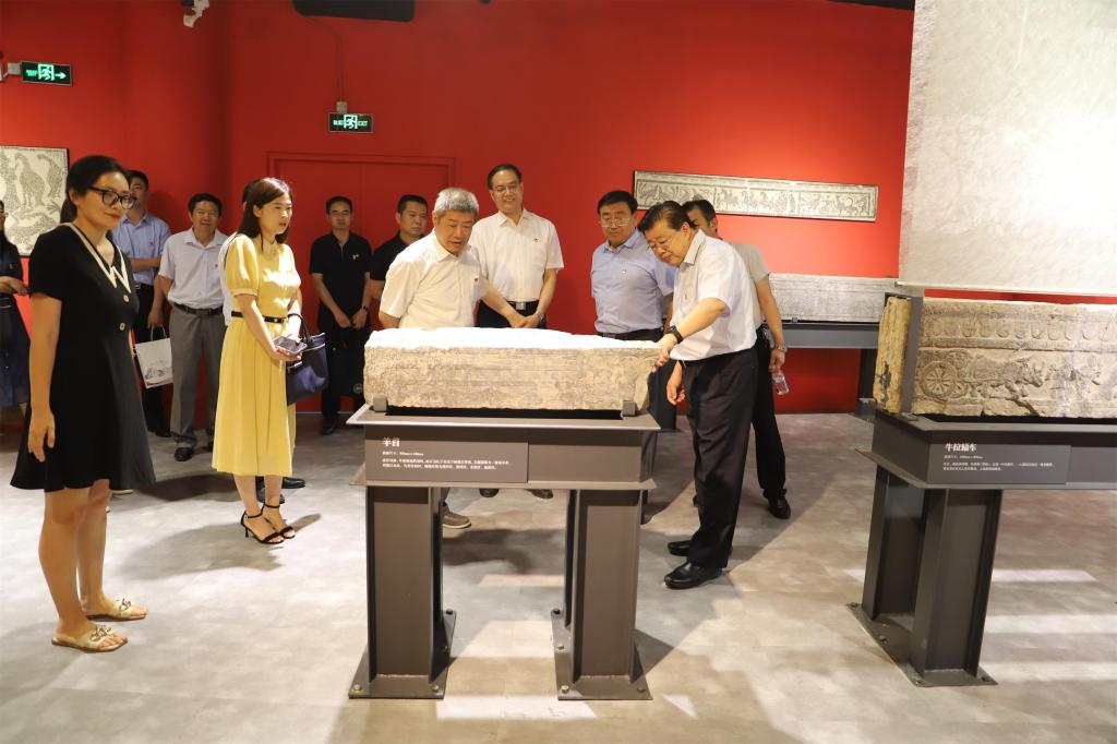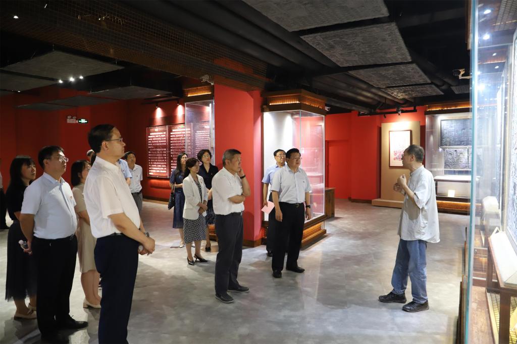 三个党支部的党员同志首先参观了学校教育部中华优秀传统文化传承基地——山东年画雕版博物馆、汉画像石艺术馆。一件件巧夺天工的年画雕版,一块块古拙厚重的汉画像石,展现了中华传统文化的丰富内涵和艺术魅力,让大家感悟到中华传统文化的神韵之美,引导大家更加坚定文化自信,坚守中华文化立场,传承中华文化基因,展现中华审美风范。