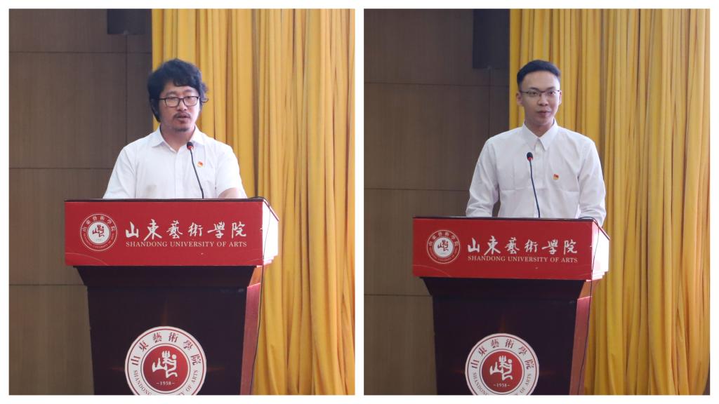 马克思主义学院教师张洪涛、戏剧学院学生李耀国代表新党员发言,表达了在中国共产党成立100周年之际,加入党组织的无上光荣和无比幸福的激动心情,表达了在党的坚强领导下为共产主义事业奋斗终身的坚定信念,表达了对伟大的中国共产党百年华诞的深情祝福。